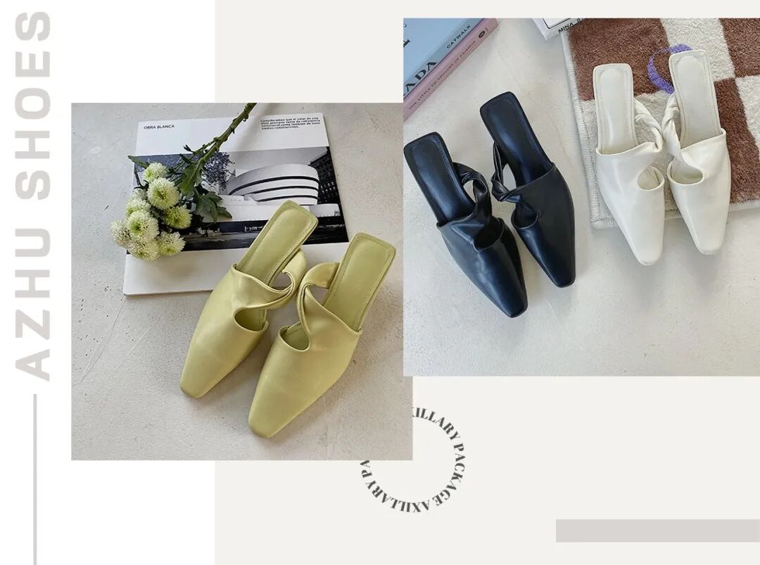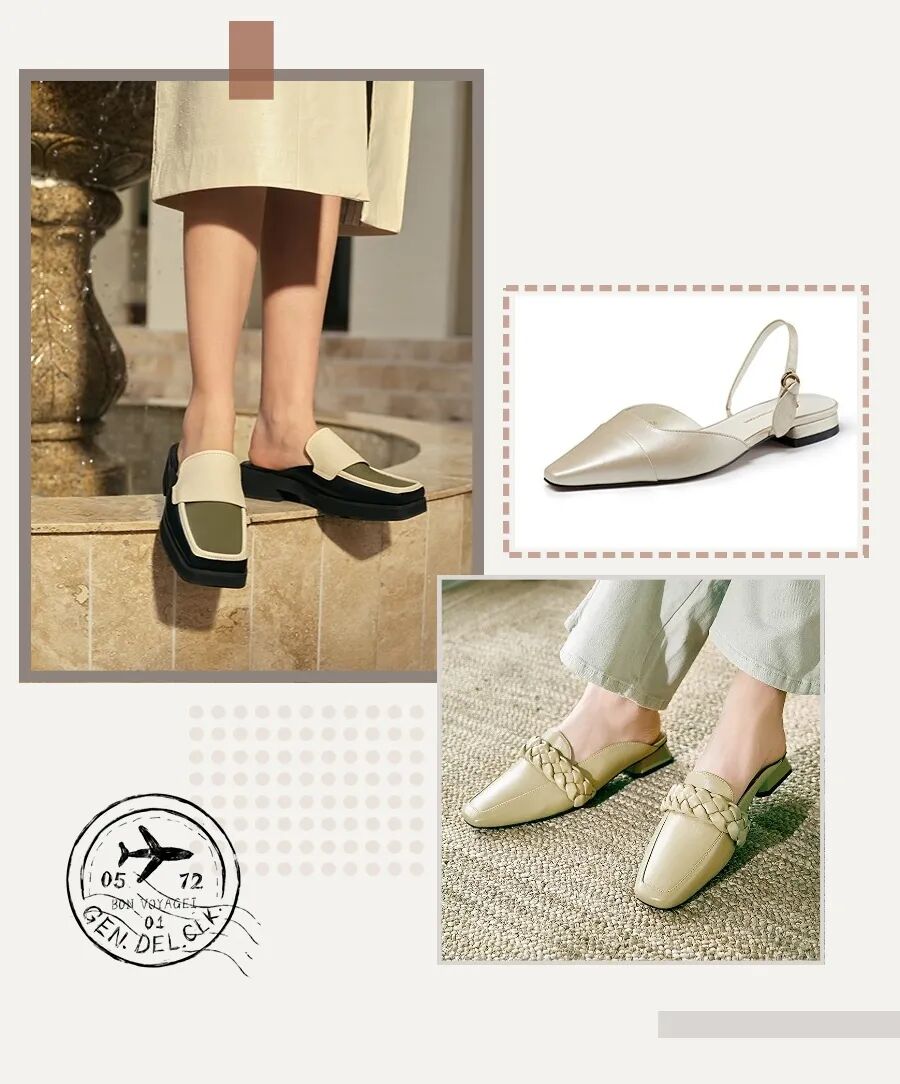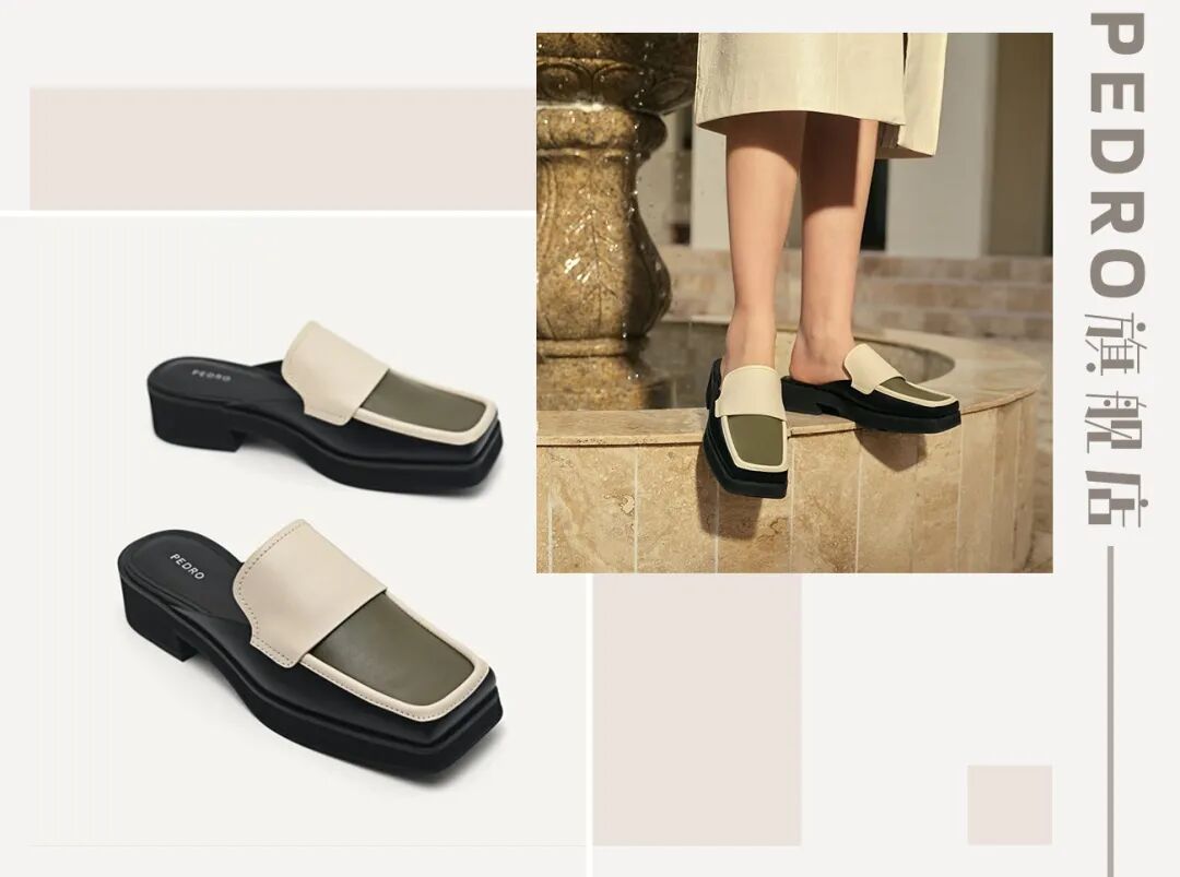 方头穆勒鞋也不能错过呀,高鞋面设计对脚的包裹性很强,不会压脚背。鞋子没有什么多余的装饰,拼色设计简约大方~