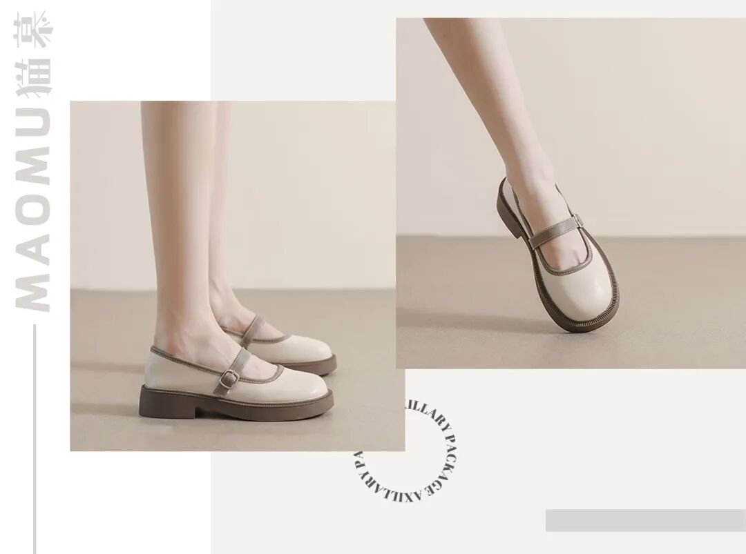 这双拼色牛奶咖啡真的好好看!造型乖巧可爱,鞋内的空间很大不挤脚,一字扣设计,简约又貌美,甜妹必入~