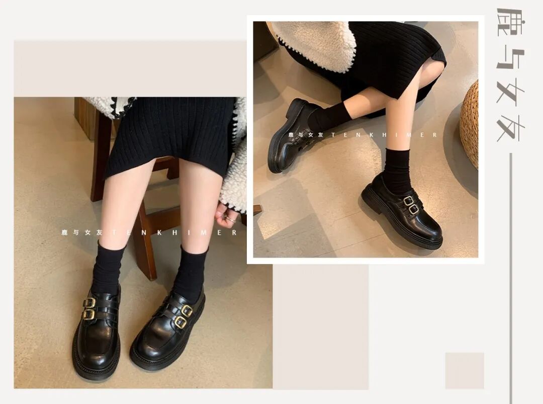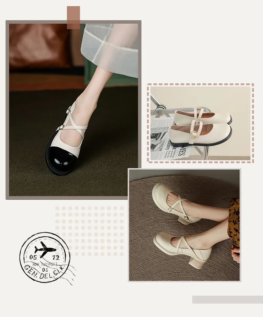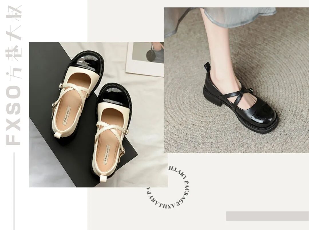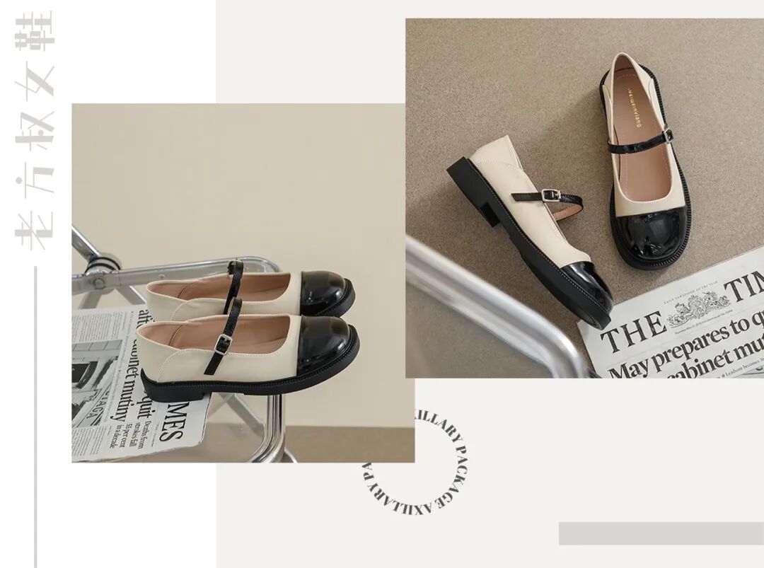 小香风玛丽珍也非常好看,全黑经典百搭,黑白拼色高级温柔!圆头不挑脚型很舒适,一字扣设计穿脱方便,平行扣、交叉扣都可以,两种穿法太值啦!