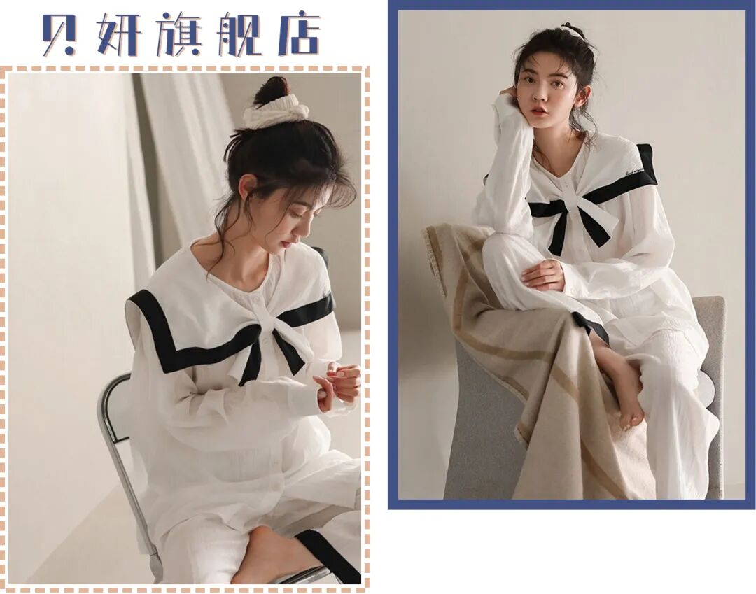 同样是家具服,为什么这件这么绝!海军领的蝴蝶结设计好可爱,俏皮又减龄,穿上就是甜美的邻家少女!