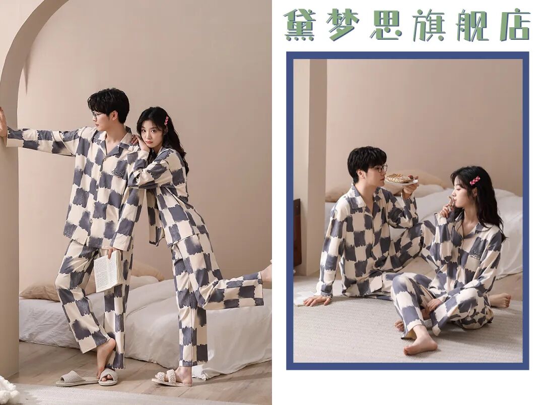 格子就是永远的经典!米色系打底的棋盘格图案,简约又时髦!而且这套还是情侣款,可以把男朋友的也一起安排上~
