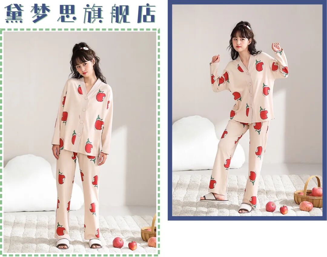 如果是这种甜美少女风的家居服,图案就不能太过密集。这个苹果图案的大小就刚刚好,可爱又童趣,甜妹必入!!!
