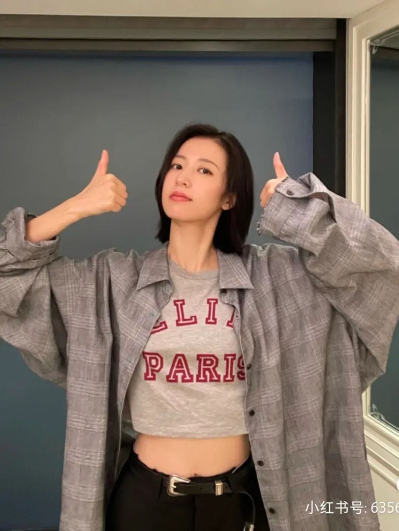 或者把oversize衬衫当做外套,内搭一件crop短上衣,下装既可以西装裤也可以牛仔裤,上短下长的穿搭法则永远有效!