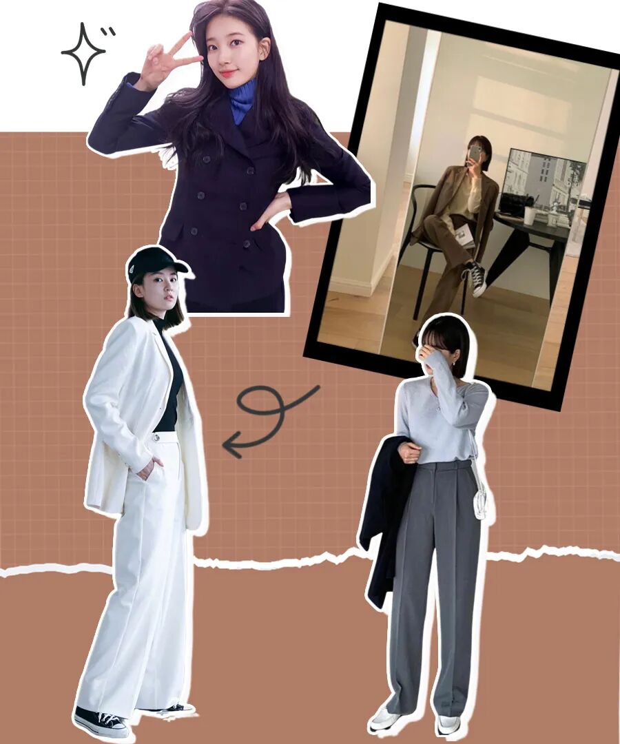 外套宽松毛衣就是温柔气质的校园学姐;换成简洁硬挺的大号西装就是干练的职场丽人👇