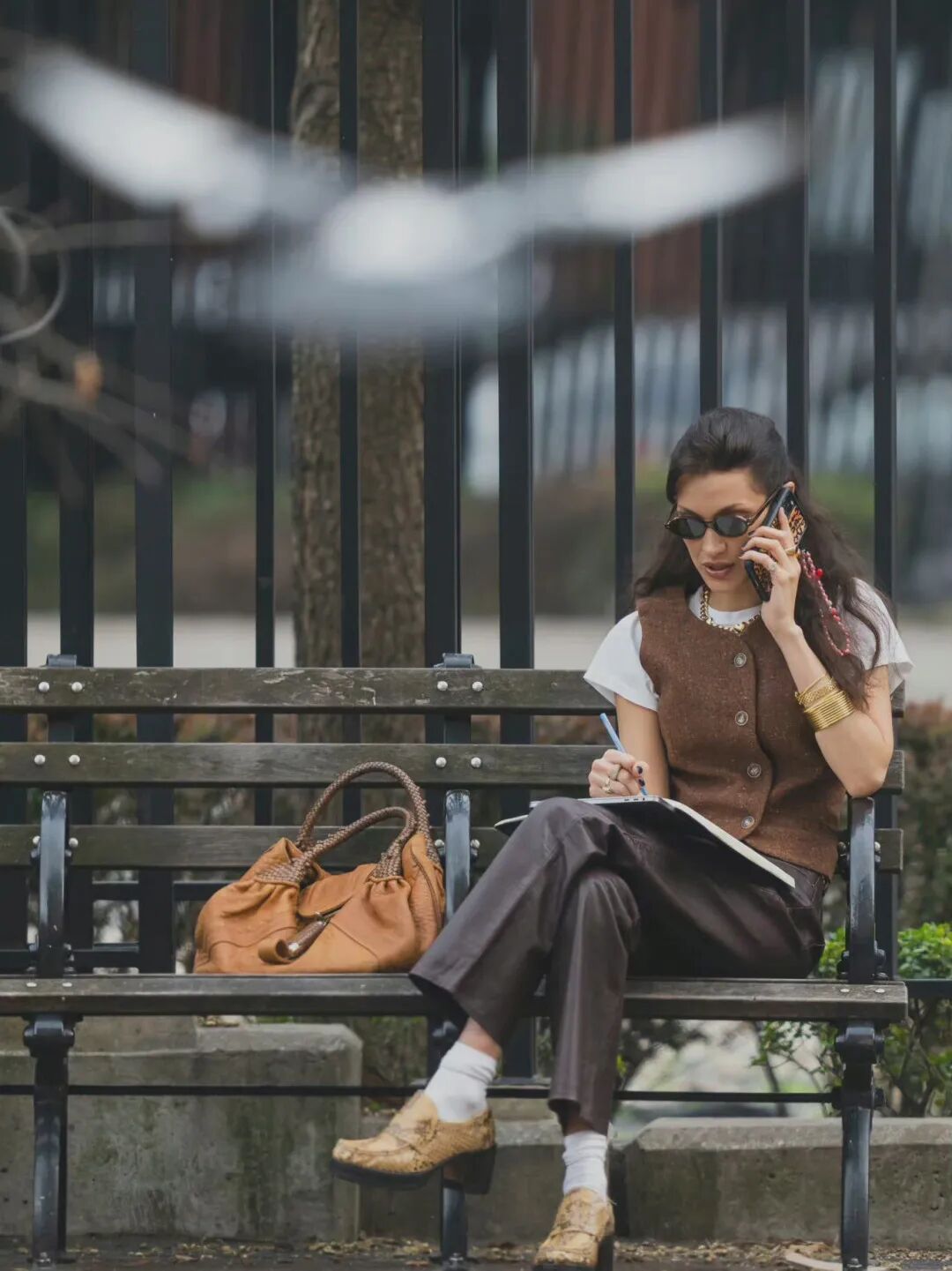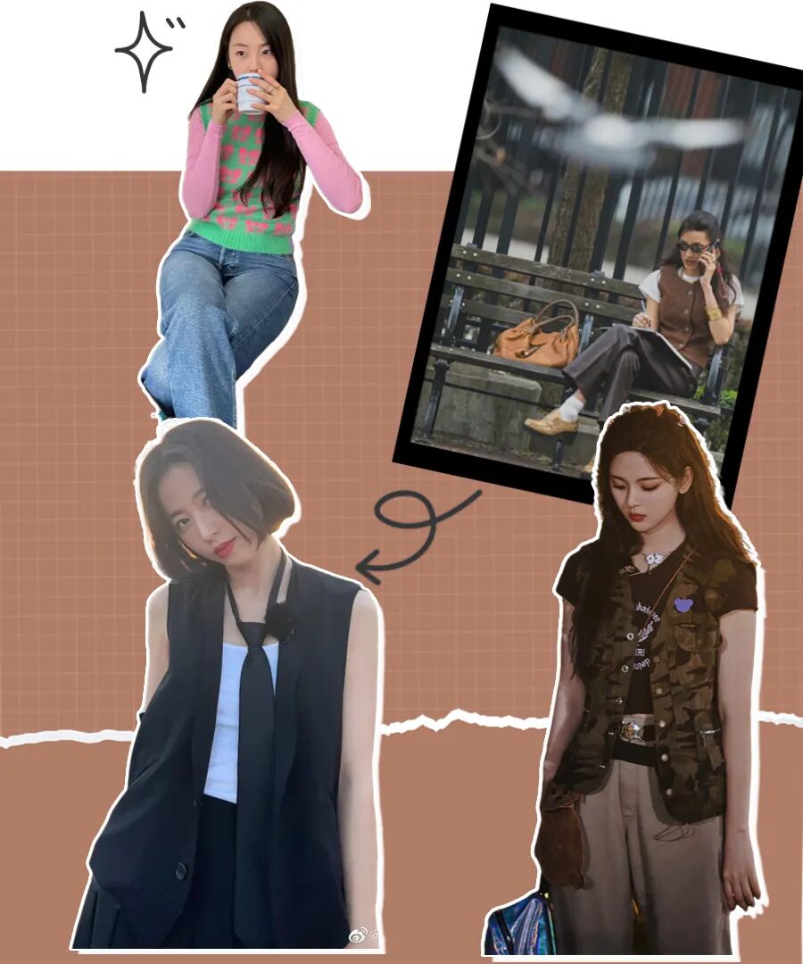 Bella选择的棕色马甲很有复古内味,配上合适的衣服和饰品,美式复古氛围就有了!