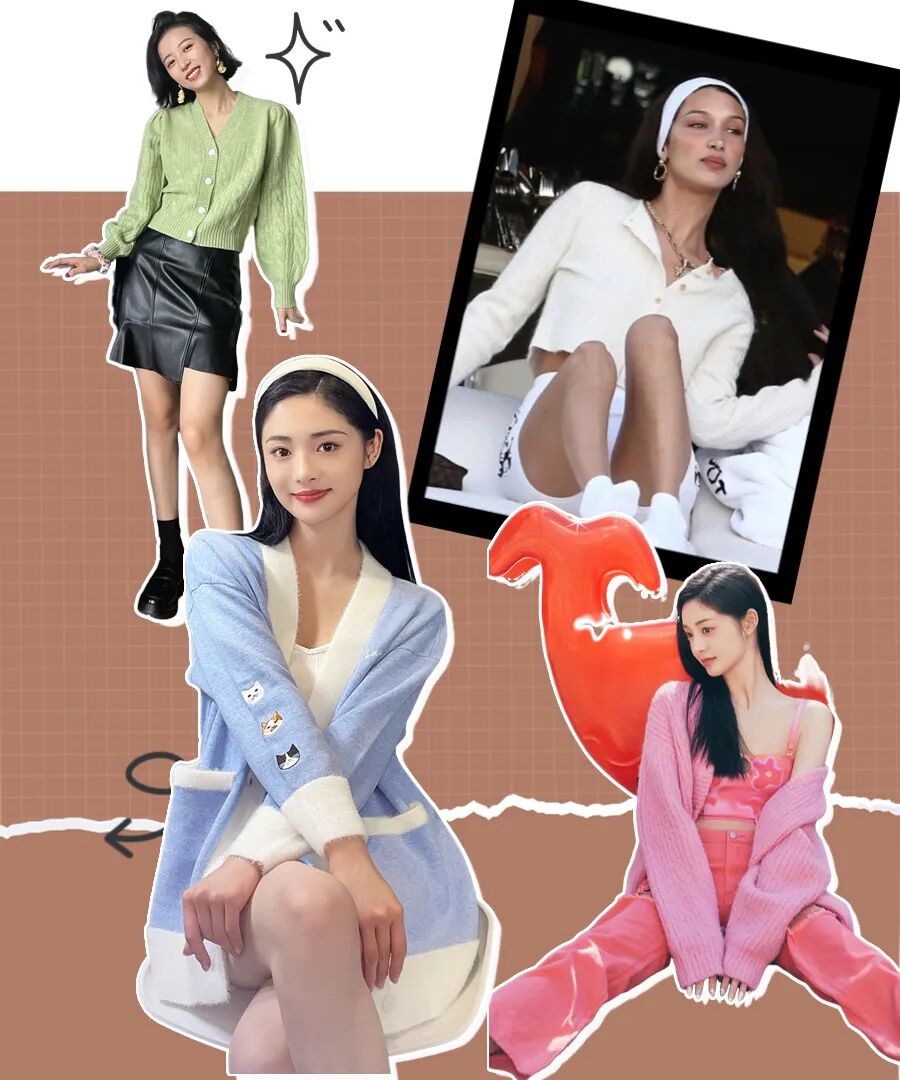 针织开衫当外套也十分百搭,match crop短上衣、修身针织、衬衫等等都能适配,还能轻松get优秀比例。