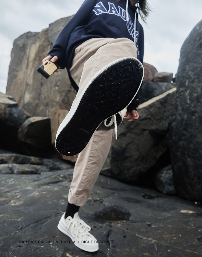 米白色的帆布面料,本身就自带一些复古感,怕小白鞋容易脏的姐妹,这款我亲测可以放心买。
