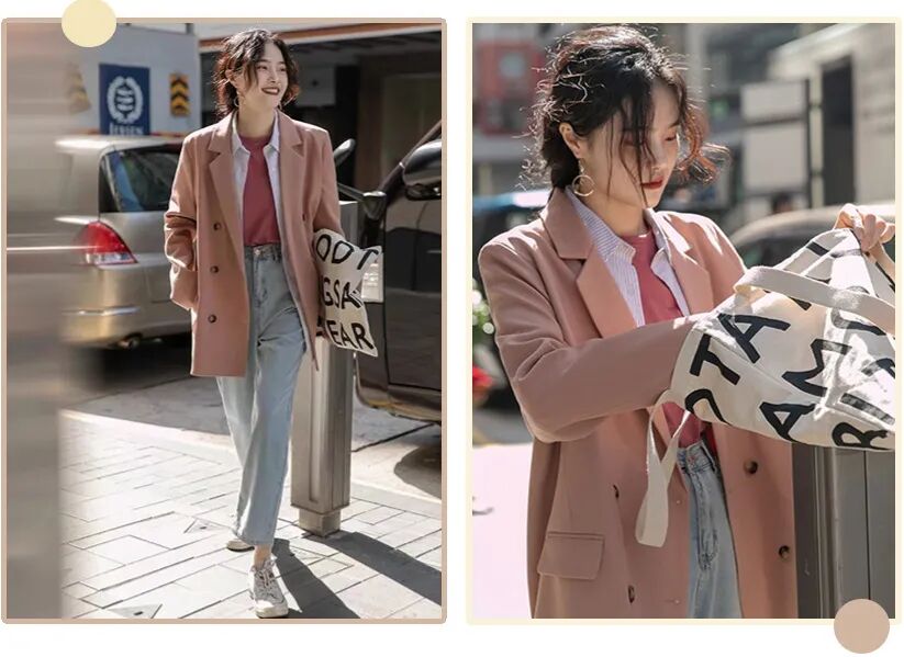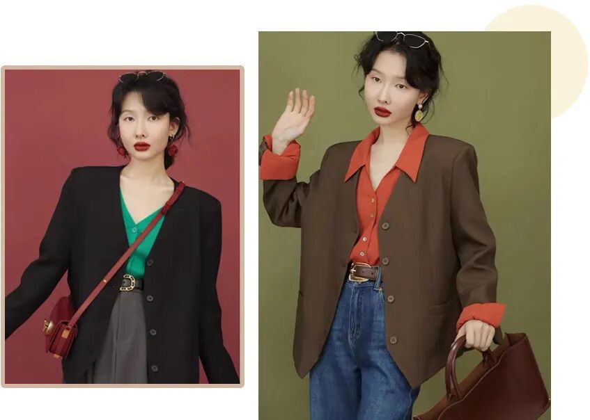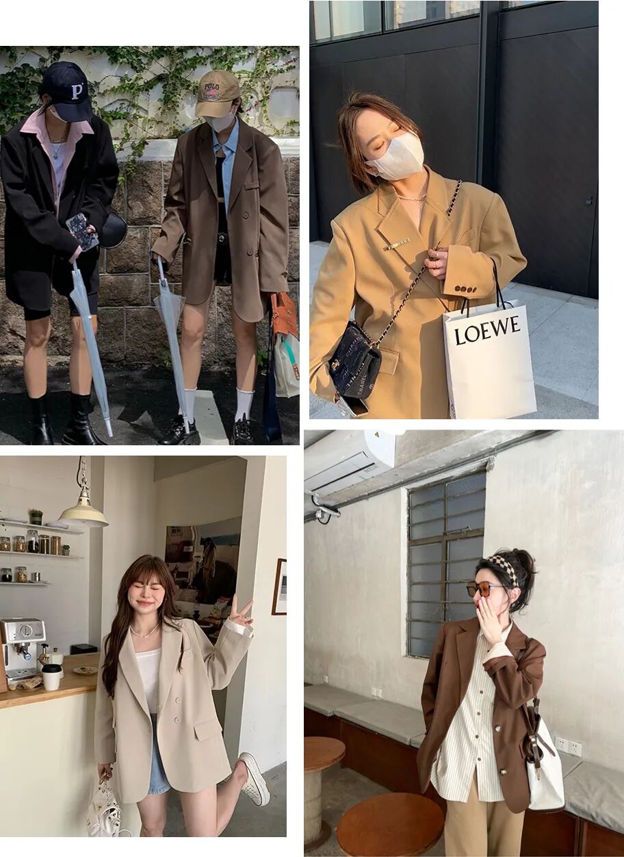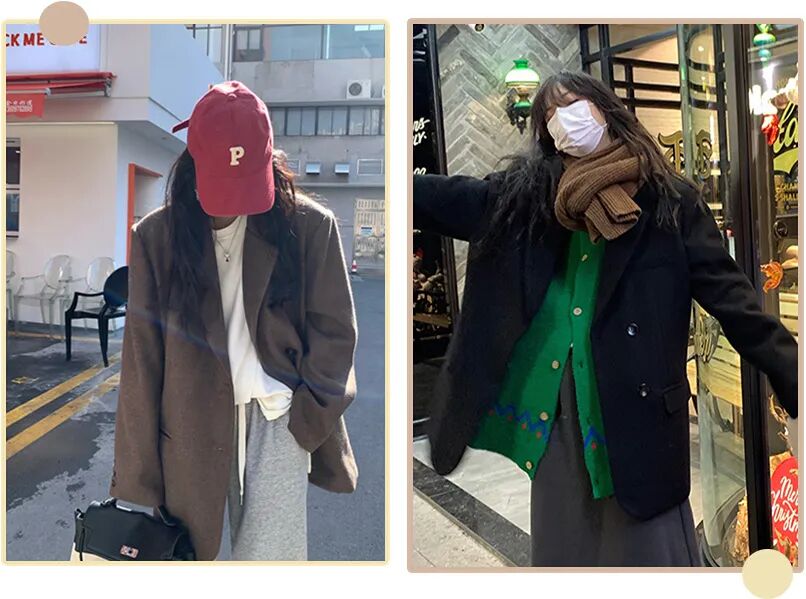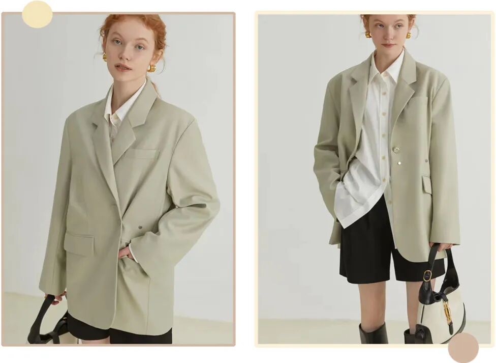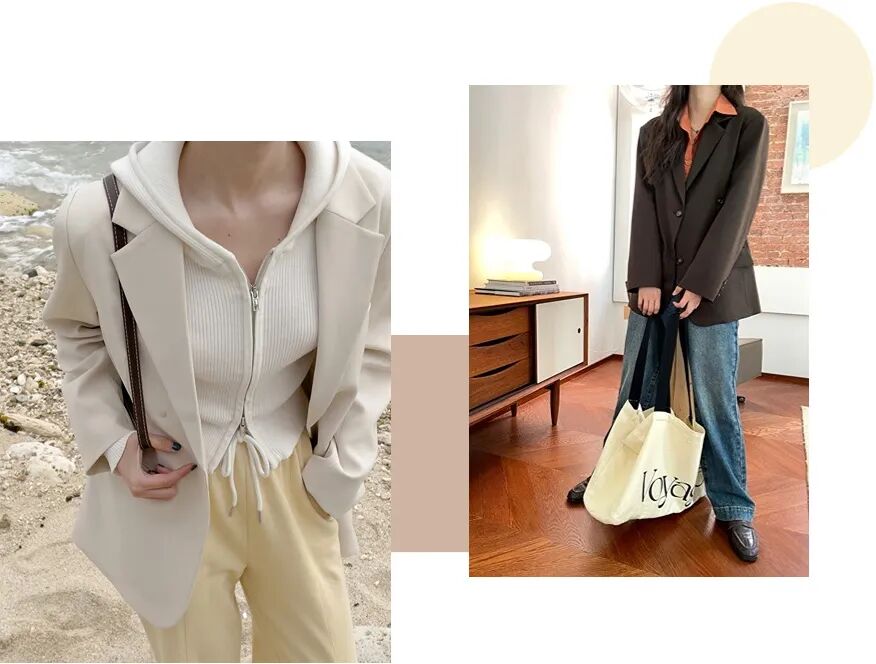 韩系慵懒范的西装外套,轻松穿出挺括利落的感觉。