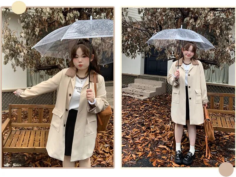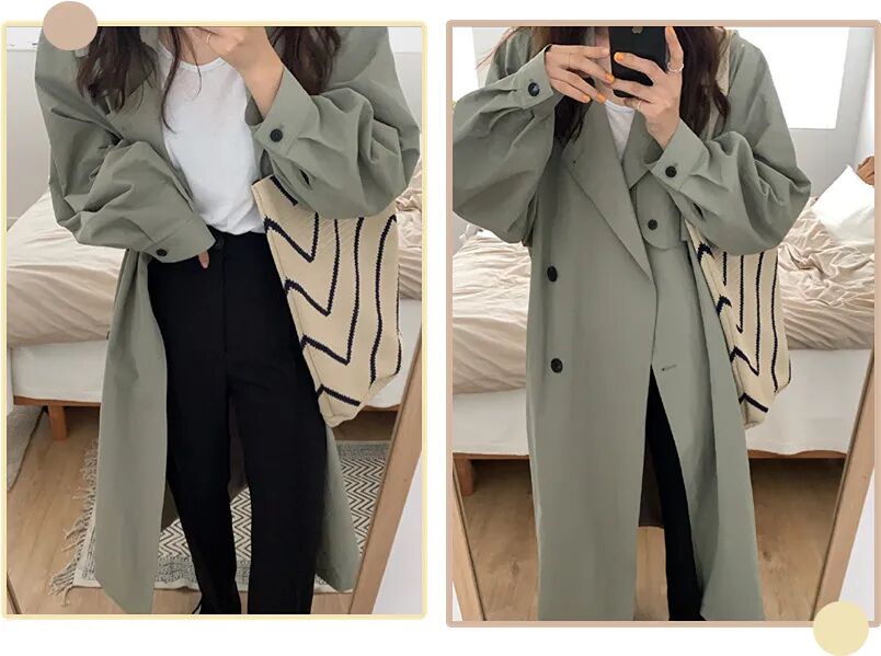 浅色风衣更加活泼一些,这款风衣的长度,对小个子女生很友好,版型也很适合微胖姐妹,不要太显瘦!