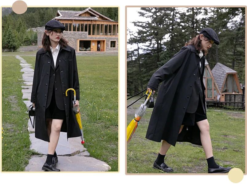 简单的中长款风衣,叠穿出简约舒适风,背上帆布包戴上帽子,既好看又随意~