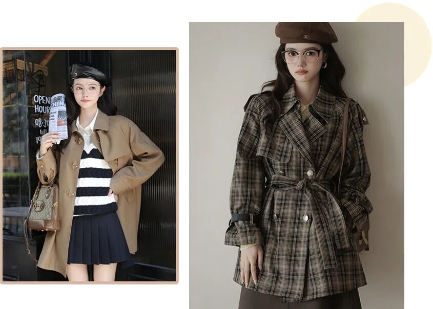 经典短款的风衣,英伦学院风拿捏到位,立体廓形,精致都藏在细节里。