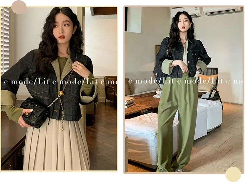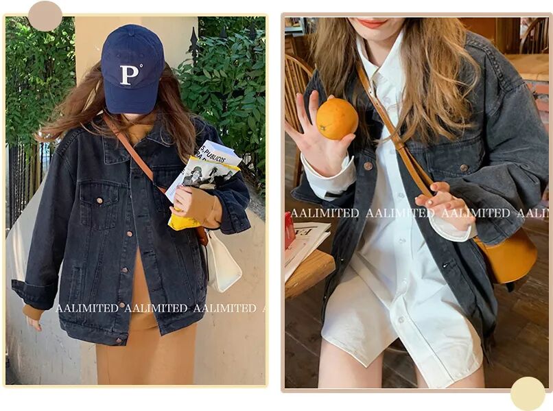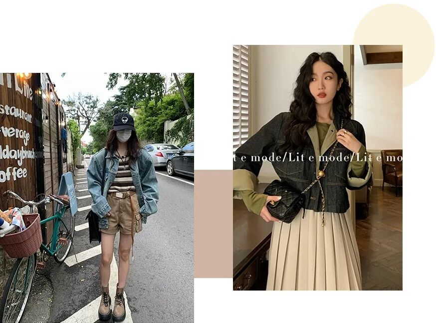 黑色的牛仔外套,早秋搭配小裙子,打造甜美元气少女氛围,深秋叠穿卫衣又是休闲随性。