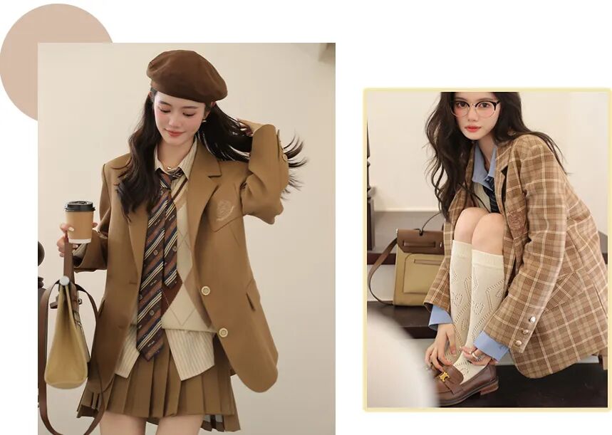 经典的西装廓形,上身简单大方,整体设计恰到好处,对身材包容性很强,修饰身材,有学院优等生的独特气质。