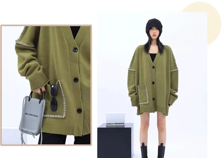 百穿不腻的一款开衫外套,自在舒适的宽松落肩版型,左边的彩色纽扣装饰,既吸睛又有趣~