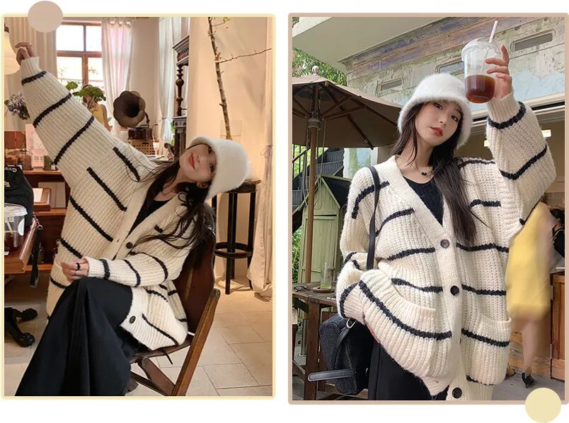 条纹针织衫是永恒的经典,自带温暖又舒服的feel,黑白配色,百搭不出错。