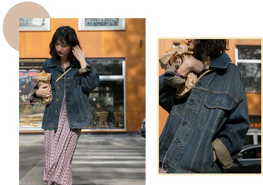 深色牛仔外套,真是遮肉显瘦优秀代表,复古感拉满,在秋天搭配碎花裙,时髦感立马up~