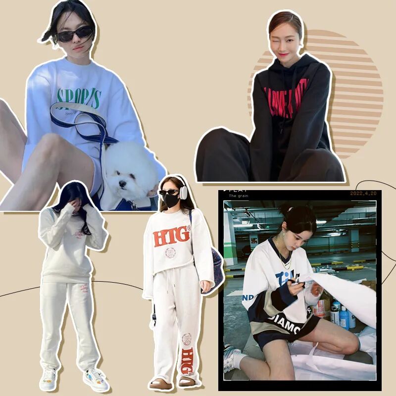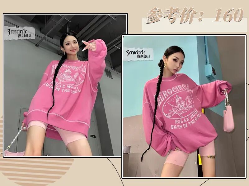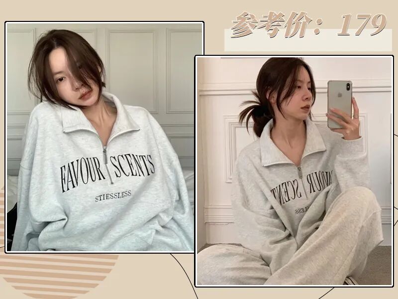圆领卫衣会比连帽好驾驭一些,相比于纯色,有大logo或者印花款更高级👇