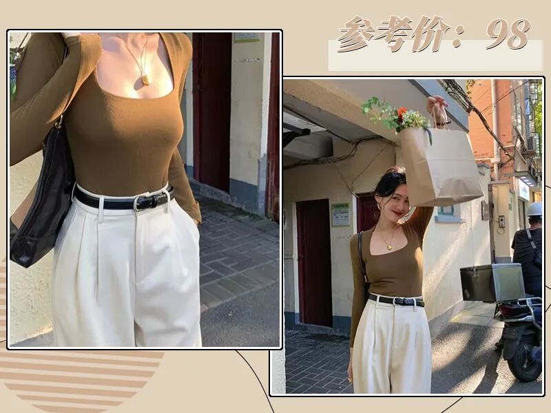 彩色针织上衣match宽松西装裤or牛仔裤简约高级,初秋模板直接照抄👇