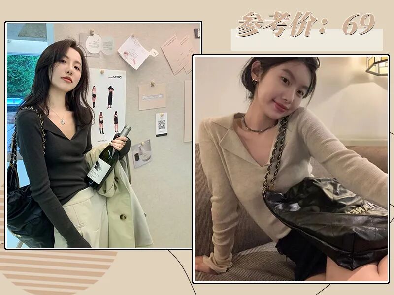 大V领+针织衫的搭配真的赢很大,很好地修饰了脖颈线条,气质又显瘦~