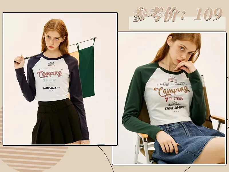 圆领撞色印花颇有美式复古感觉,因为比较修身又带点性感味道~