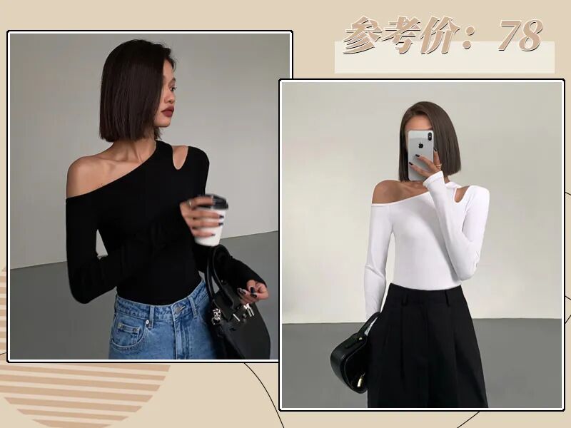 适度露肤的法式上衣可以很好的拿捏曲线美,性感的很有韵味~