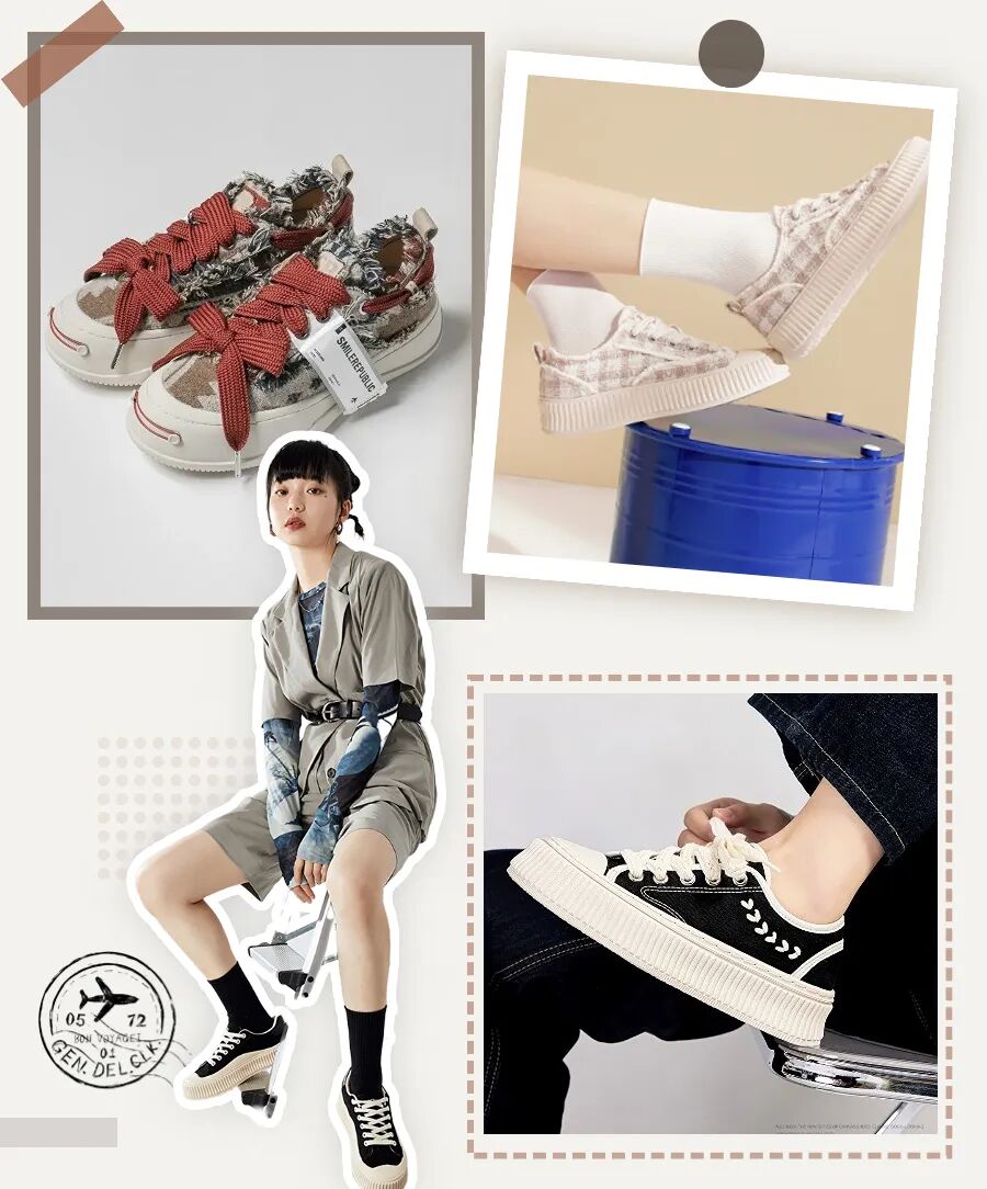 时尚果然是一个轮回,今年厚底帆布鞋又火起来了。它穿起来不仅舒服,还显得腿长,这谁能扛得住?而且超级百搭、可盐可甜,潮妹必入!