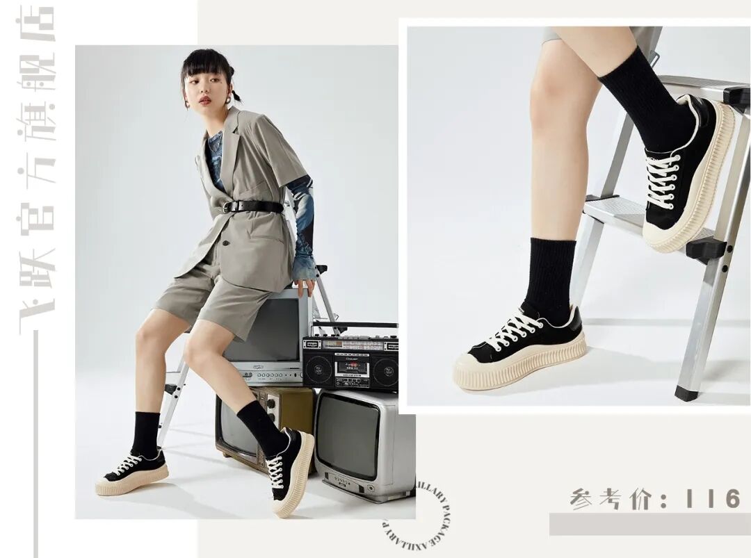 飞跃的性价比也很高,百元就能全款拿下。他家这款厚底饼干鞋有超多颜色可以选择(可以复制链接去淘宝自行查看哦),全棉的帆布材质穿起来舒适自在,鞋边的饼干元素设计个性又时髦。