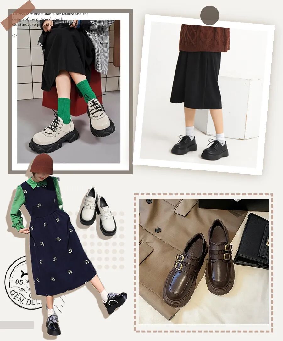 厚底小皮鞋简直就是小个子福音,穿上立马原地增高四五厘米,整体风格偏英伦风,非常的百搭!无论是牛仔裤还是小裙子,都能很好的适配!