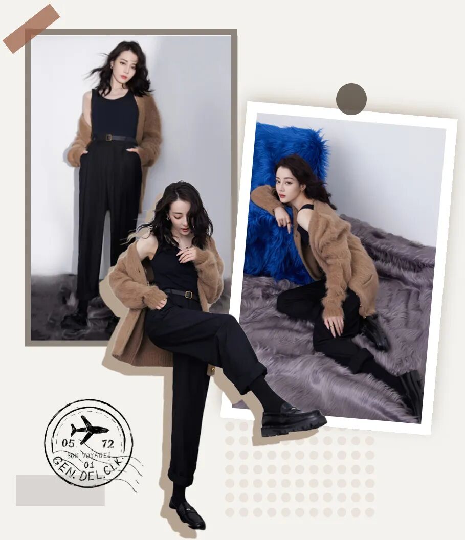热巴这身黑色背心西裤就超级帅,兼具了简单大方和慵懒帅气!