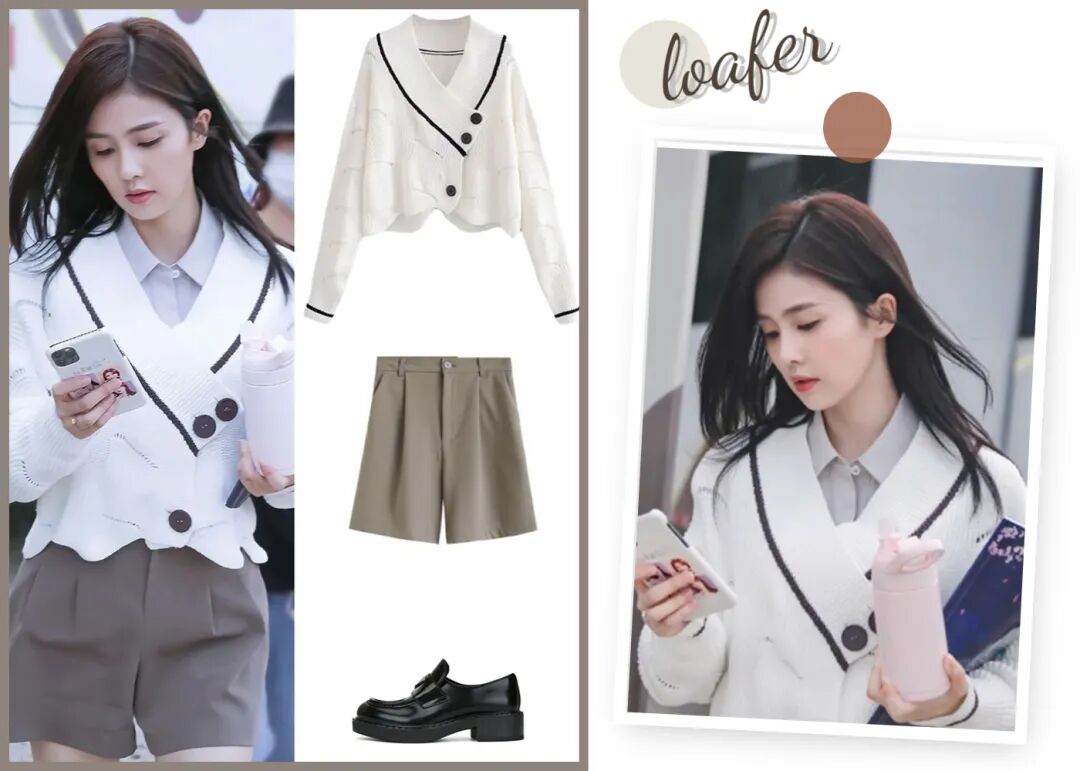 和短裙比起来,乐福鞋+短裤的搭配则多了点飒爽和少年感,慵懒中不乏帅气!