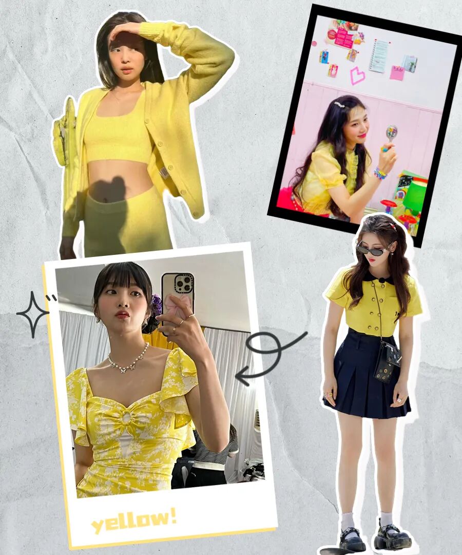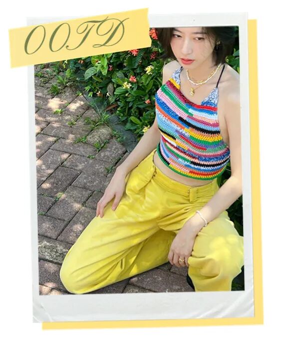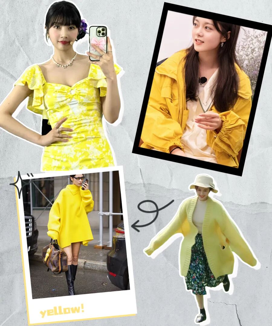 鹅黄色相较于明亮黄更有少女感也更好驾驭,在日常穿搭中的出现率也更高~
