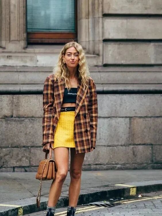 不过黄色格纹在我心中才是明亮黄的正确打开方式,美式校园style轻松拿捏!