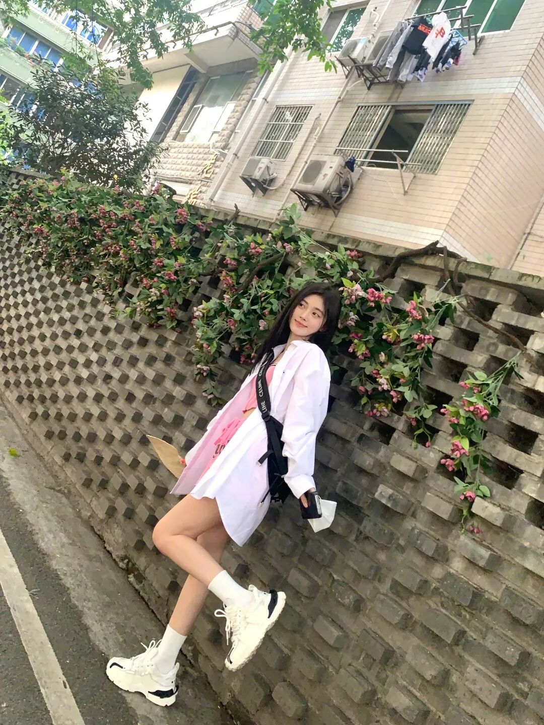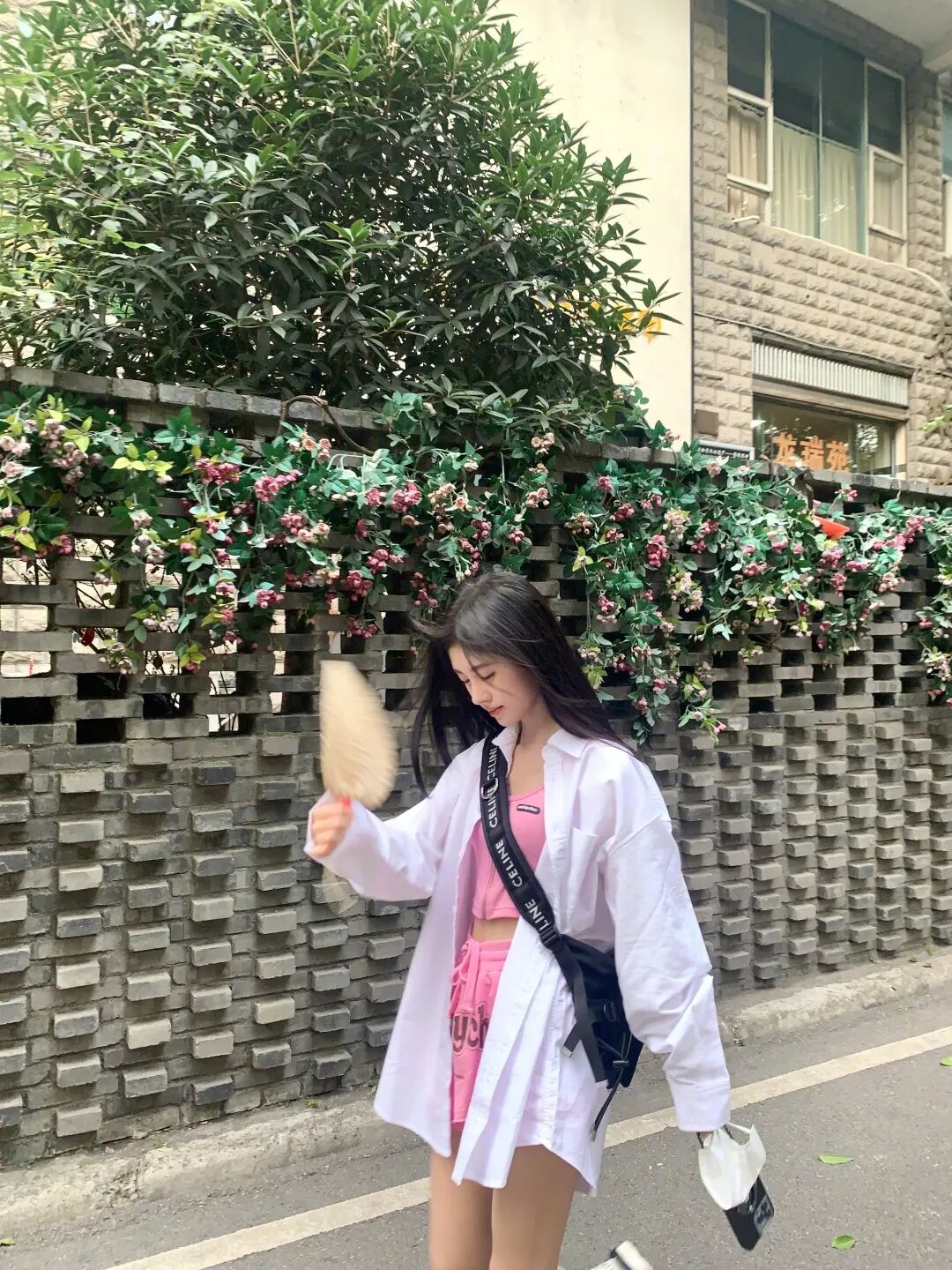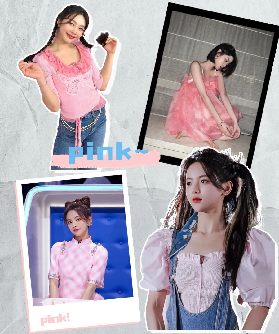 如果觉得一身粉容易甜腻过度就可以用白衬衫来平衡,甜中带酷。