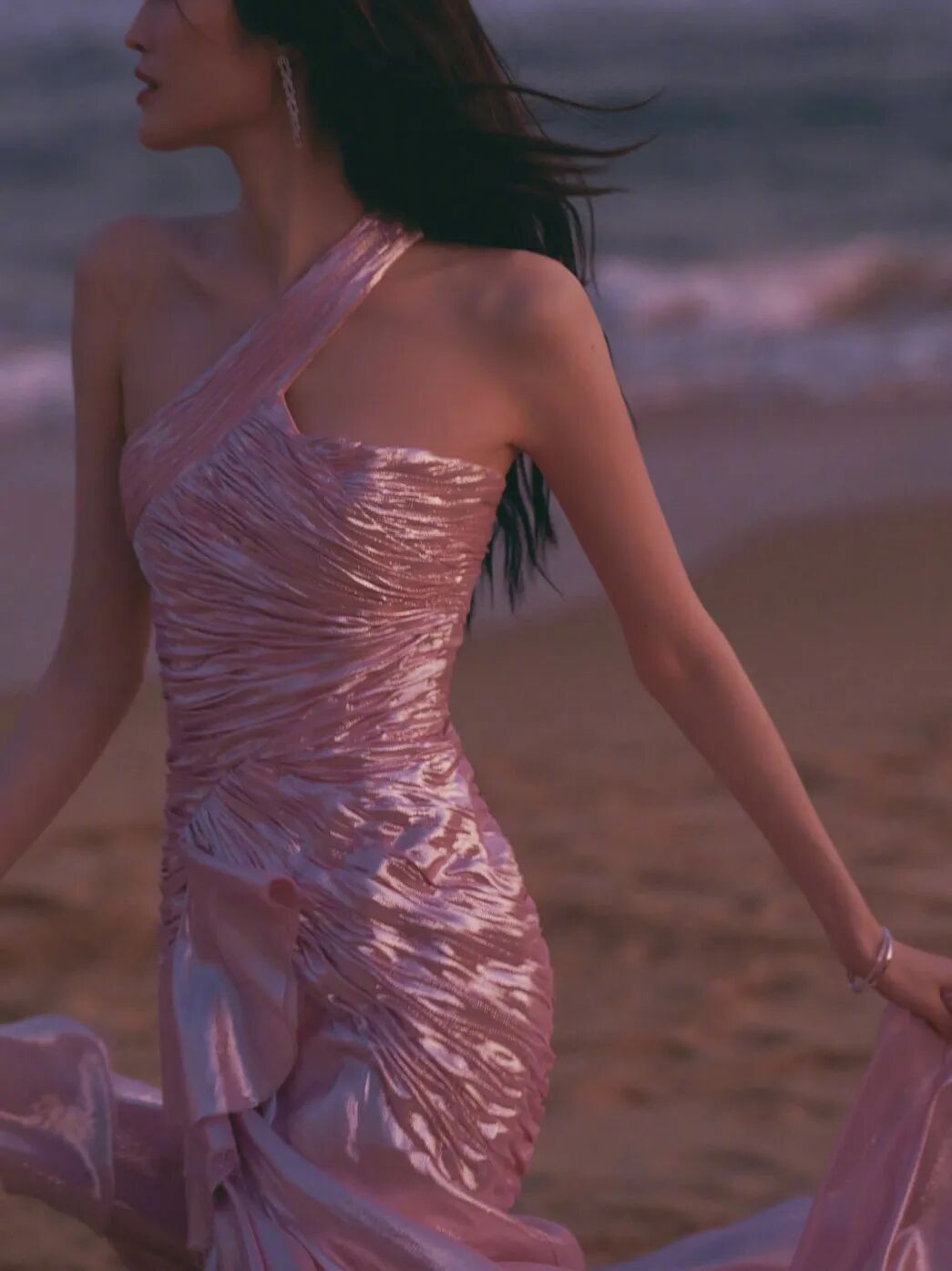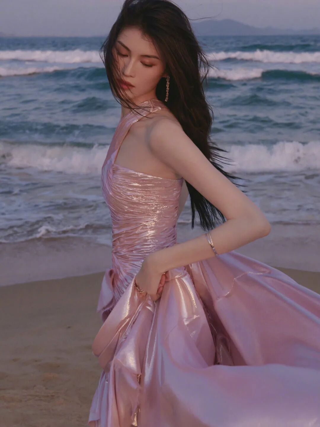 把珊瑚粉应用在吊带裙上既有少女的娇憨也有轻熟小性感的味道~