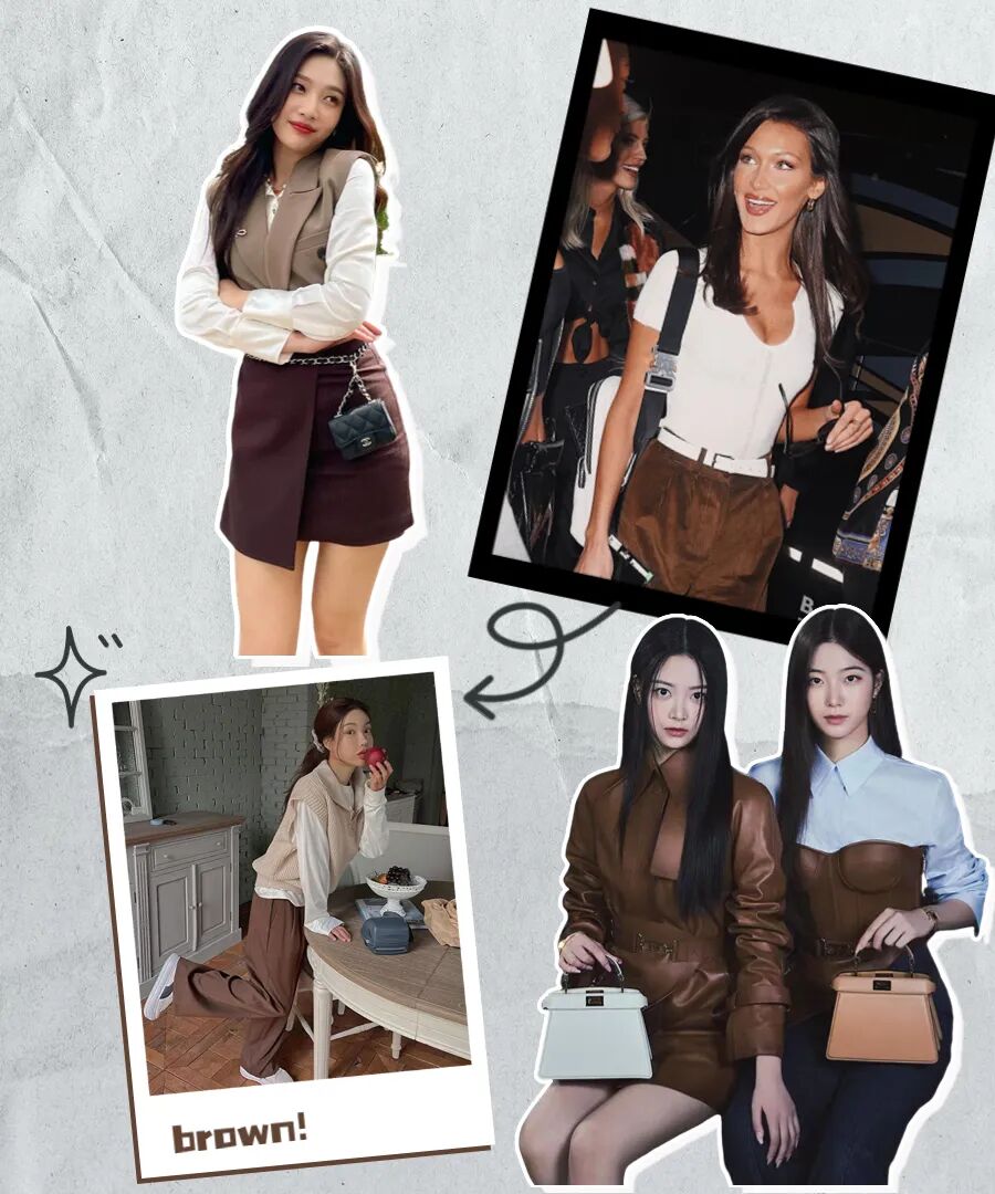 But全身棕色含量过高未免会显得压抑沉闷,这时候可以用白色等浅色来调和~
