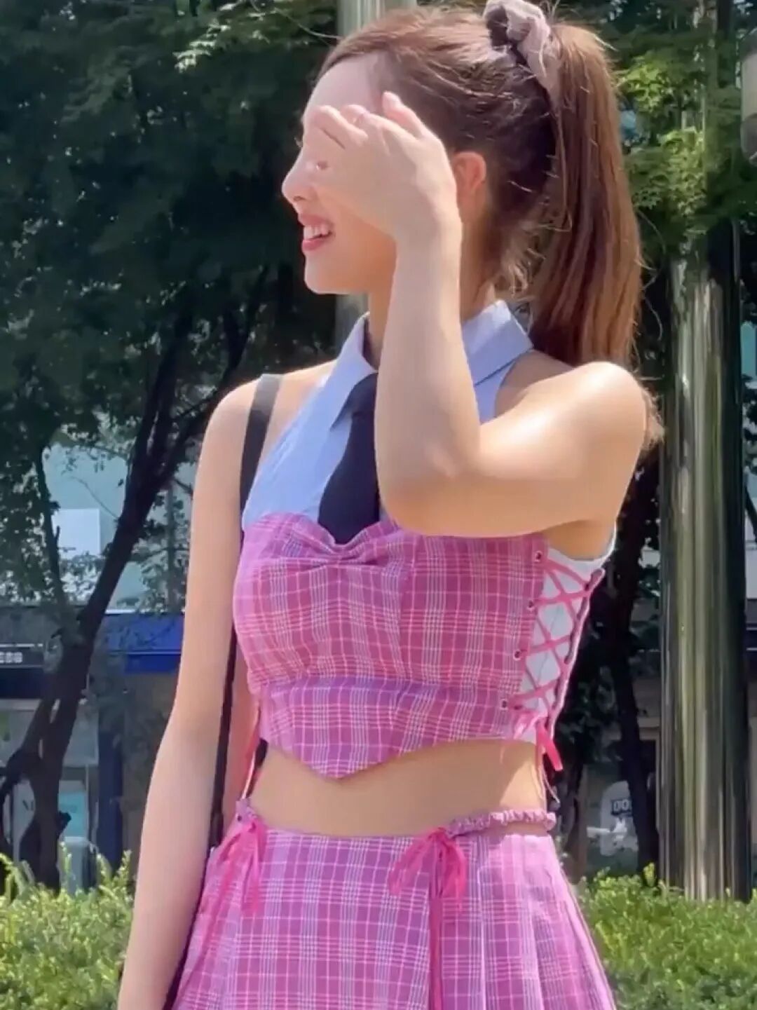 粉色格纹美式套裙也不错,是又甜又辣的美式甜心一枚吖~