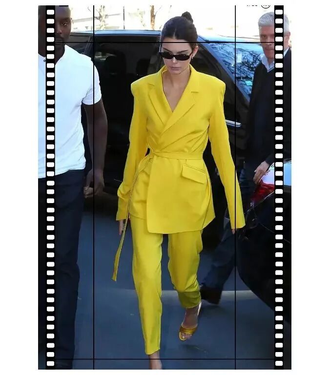 明亮黄和利落的剪裁、硬挺的面料相结合也会有意想不到的效果,像肯豆这样一整套的西装搭配,潇洒干练👇