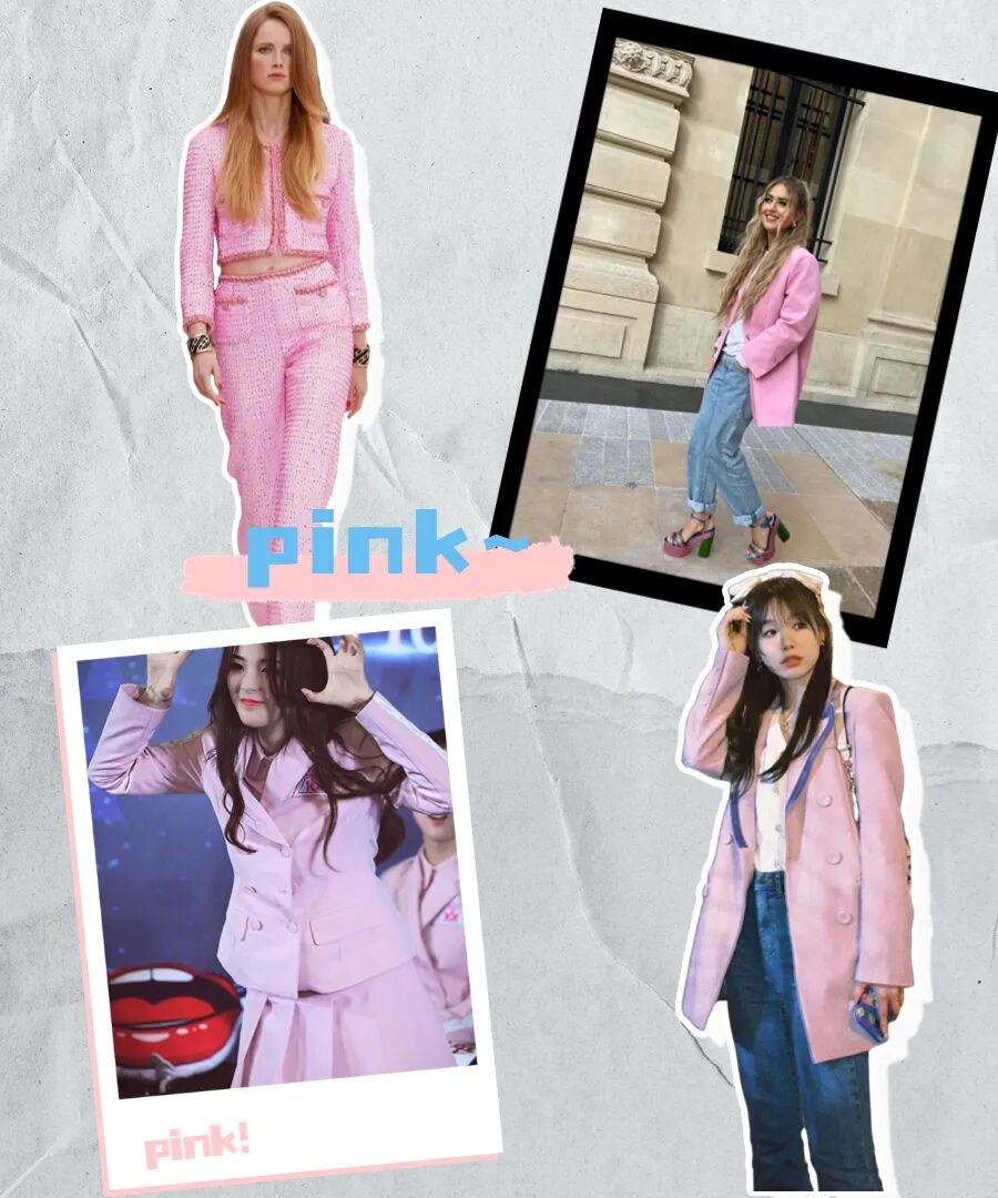 珊瑚粉自带的少女感和硬挺中性的单品也能碰撞出不一样的火花,比如西装、衬衫等等,用粉色渲染让你气质、气场全开~