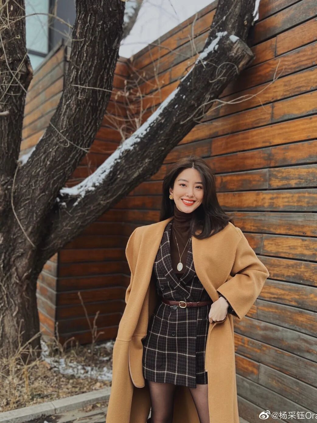 咖啡棕高领内搭+同色格纹裙+卡其大衣,满分秋冬法式穿搭既时髦又有气质!
