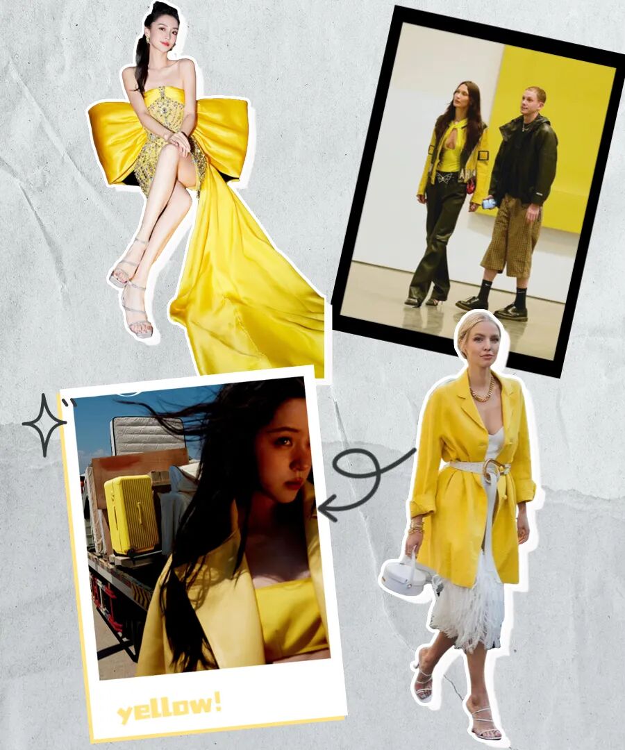 就算不穿在身上,明亮黄作为配饰点缀也是很耀眼的存在,能给我们简单、沉闷的穿搭注入灵魂。