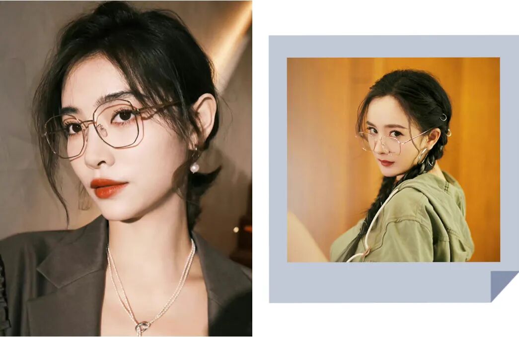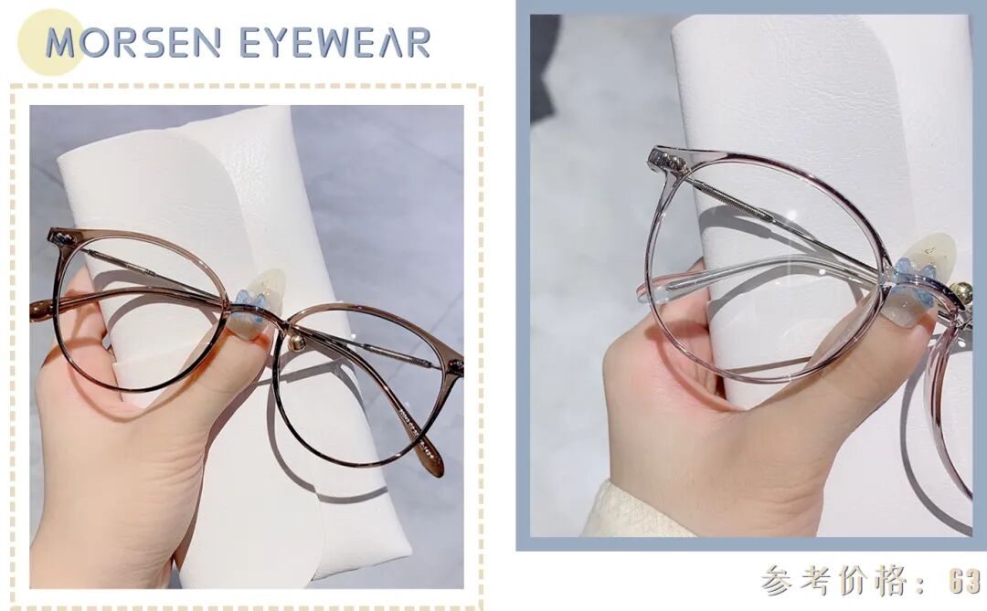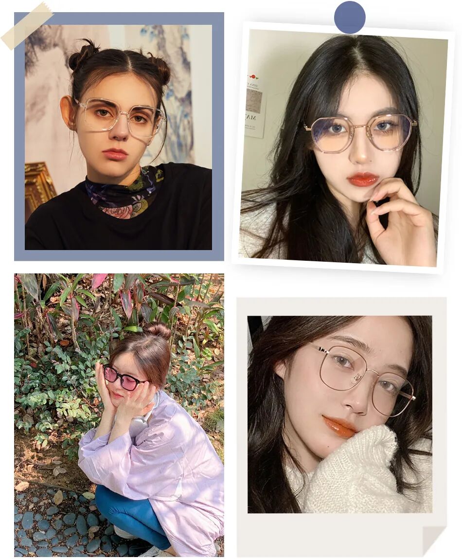 在选择眼镜框的时候,可以配合全身的穿搭和妆容,精致度瞬间up!金丝框高级气质、透明框自然低调、黑框百搭时髦,按需选择就可以啦!
