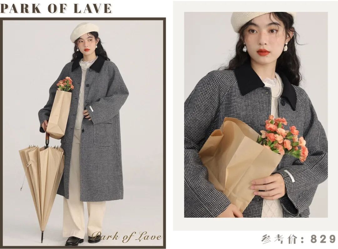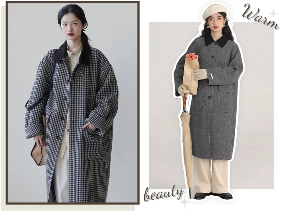 这种小翻领设计的大衣,就很适合学生党和初入职场的姐妹,不会显得人很成熟,时髦又减龄,黑白格纹更是不会出错,永远经典耐看!