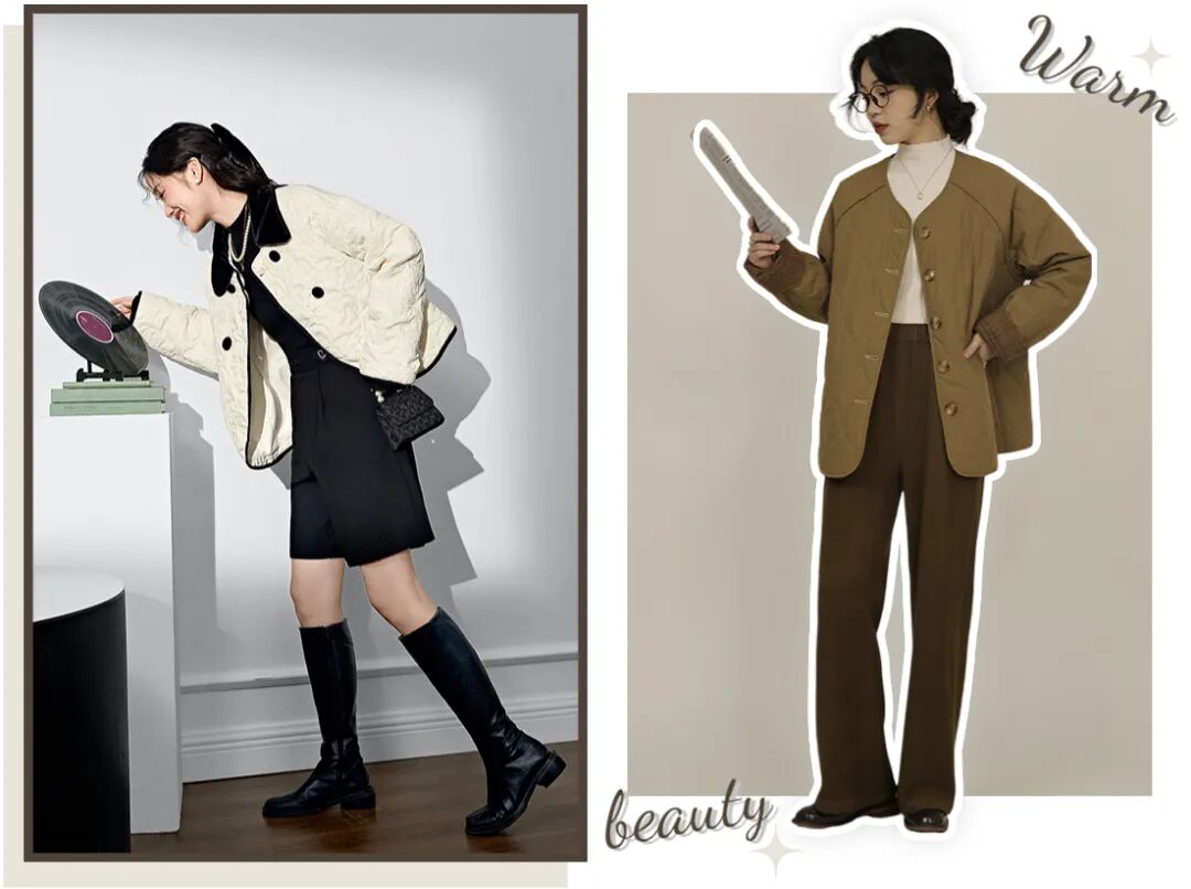 我最近很喜欢这种有压纹的棉服,穿起来舒适不压身,不会显得人很臃肿,保暖性也非常不错~