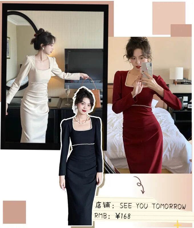 方领款露出锁骨炒鸡显瘦,有了珍珠包边加持精致贵气,年末要参加活动的可冲!