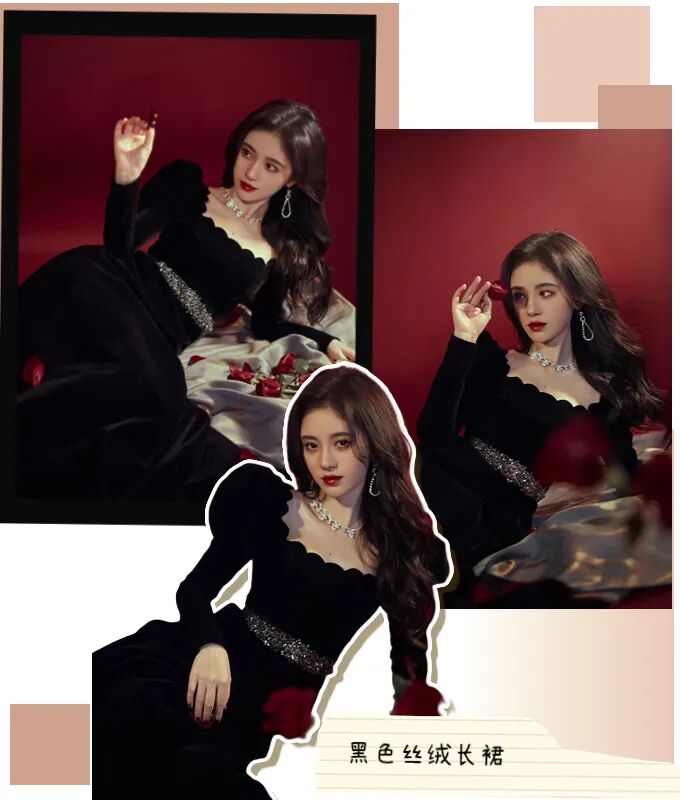 说到贵气名媛裙的代表,就不得不提丝绒长裙啦,咱们小鞠一战成名的黑丝绒长裙真滴很绝,清冷矜贵演绎的淋漓尽致~