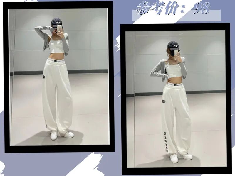 因为运动裤比较宽松,所以上身就可以选择稍微修身一点的来中和,一紧一松的穿搭法则才能完美切割身材比例!