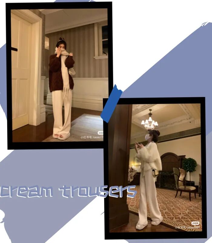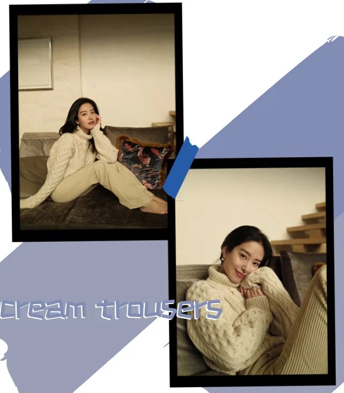奶油色既拥有白色的高级知性,又摒弃了白色的冷调变得更加温柔,既百搭又好驾驭,绝对是冬天的“王炸”神裤。