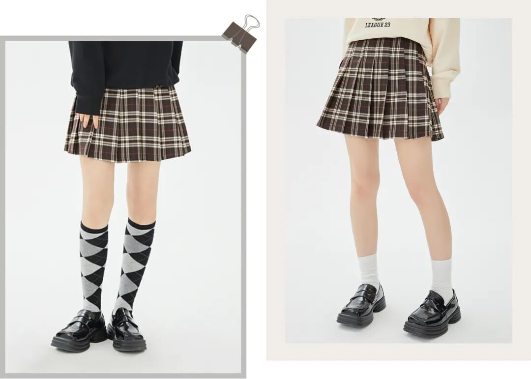 下装的格纹短裙也是学院风的标配了,经典的格纹元素,复古百搭又耐看!高腰设计显瘦显腿长,秒get减龄穿搭。