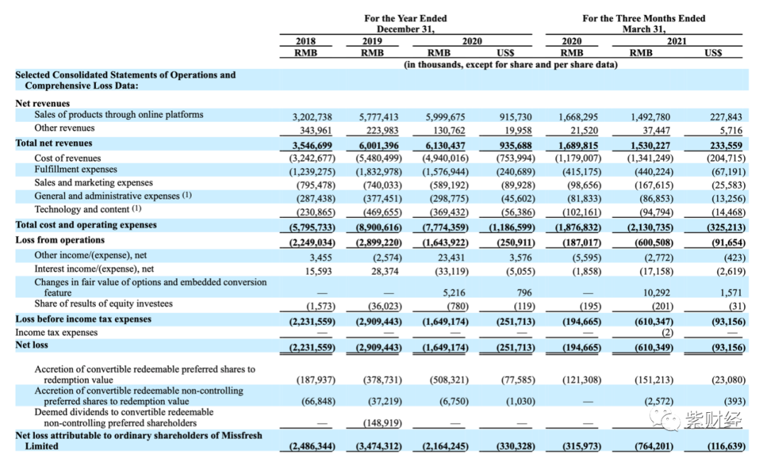 招股书显示,2018年、2019年、2020年及今年1-3月,每日优鲜净亏损额分别为22.3亿元、29.1亿元、16.5亿元、6.1亿元,照这样的烧钱速度,上市融来的那点钱完全不够今年烧得。