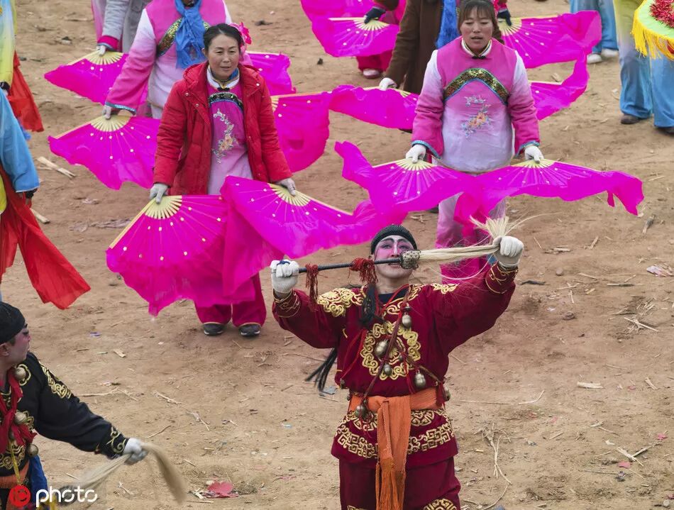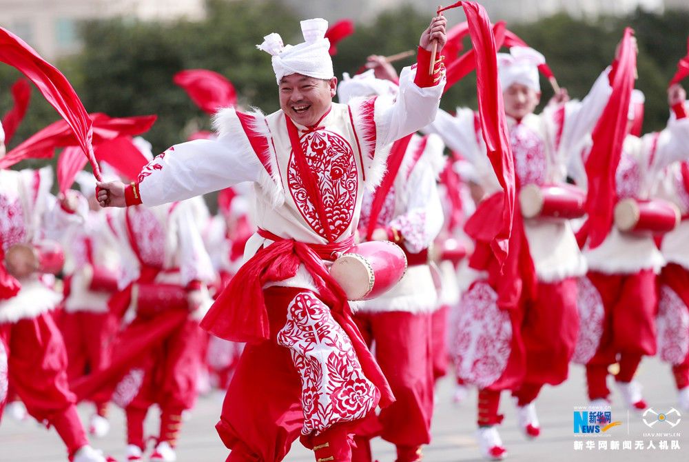 安塞腰鼓表演。新华网 杨喜龙 摄
